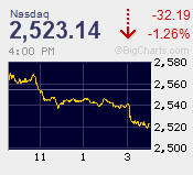 The Nasdaq Composite fell 32.19 points, or 1.3%, to 2,523.14.